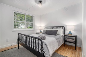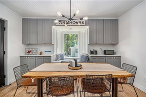 The Farmhouse offers plenty of space for two couples to share the home without sacrificing privacy. Each bedroom has its own full bath and the common space spills onto a beautiful sunlit porch.