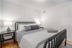 Whether you're coming with your sweetie or inviting another pair, you'll have your privacy here. The bedrooms are split by the living room and dining room and each have their own full bath with wall to wall tile. Crisp, clean textiles and the scent of new construction mixed with the charm of an old "Farmhouse" set this short stay apart from the rest.